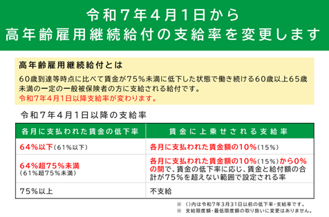 (画像出典)厚生労働省:令和7年4月1日から高年齢雇用継続給付の支給率を変更します