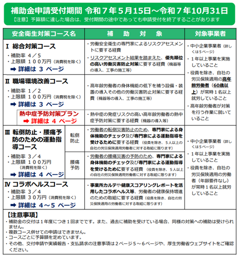 60歳以上の従業員(労災保険適用者)の労災防止のための設備改善などを対象とする補助金です。