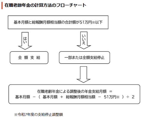 在職老齢年金とは、「基本月額+総報酬月額相当額」が「支給停止調整額」を超えると、老齢厚生年金の一部または全部が支給停止される制度です。