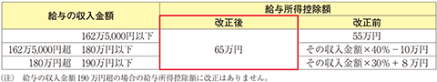 また、給与所得控除についても55万円の最低保障額が65万円に引き上げられました。