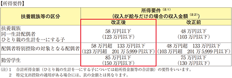 これらの改正に伴い、各種控除の所得要件や、給与収入のみである場合の収入要件が引き上げられています。