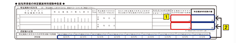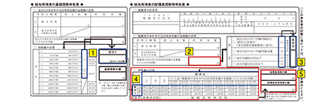 旧様式からの主な変更箇所は、「控除対象扶養親族の数」の欄が「控除対象扶養親族等の数」となり「特親」の人数(特定親族の人数)の記載欄が加わったことと、控除額の欄に「特定親族特別控除の額」が加わったことです。