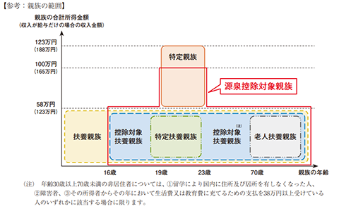ちなみに合計所得金額が「58万円以下」である19〜23歳未満は、従来どおり「特定扶養親族」(控除額63万円)の対象となります。
